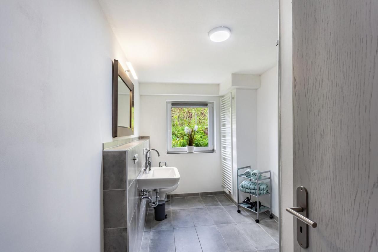 Nebenan liegt das modern sanierte Badezimmer,